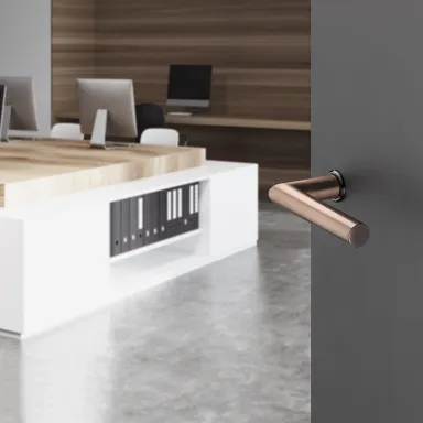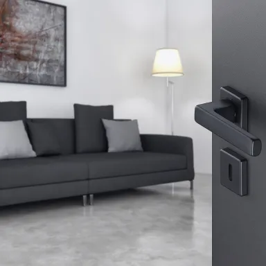Customizable door handles with mini-rosetteHOPPE